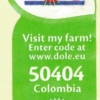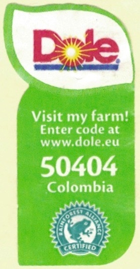 Dole ® Visit my farm! enter code at www.dole.eu 50404 Colombia rainforest alliance certified