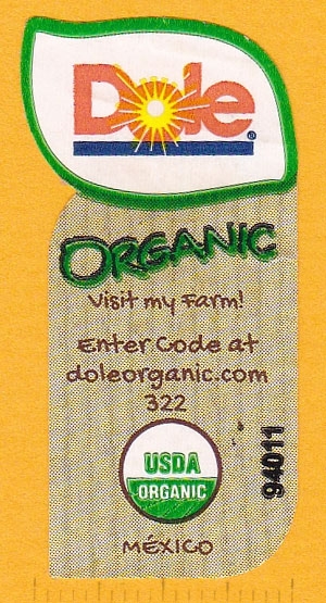 - D›Dole›Dole: Classic›Dole: Visit a Bananafarm›Dole: 2019 - Visit my Farm / Powering you & Long Labels›Visit my Farm: Brown Organic Label›Visit: Brown Label & USDA & México