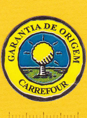 It's from a Brazilian Carrefour and may well have been on bananas. I got similar ones of varying sizes off of bananas on multiple occasions, and even one time very large ones, like for melons, but used on bananas in a store display showing all the different kinds of fruit they were promoting.