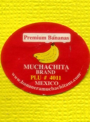 ¿Alguna vez has visto la etiqueta siguiente en un plátano? Por favor ayúdenos a identificar erratas, etiqueta engomada fruta o imitaciones.