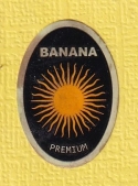 Faded gold on border. Misprint found on bananas. The face of the sun is hardly to see.