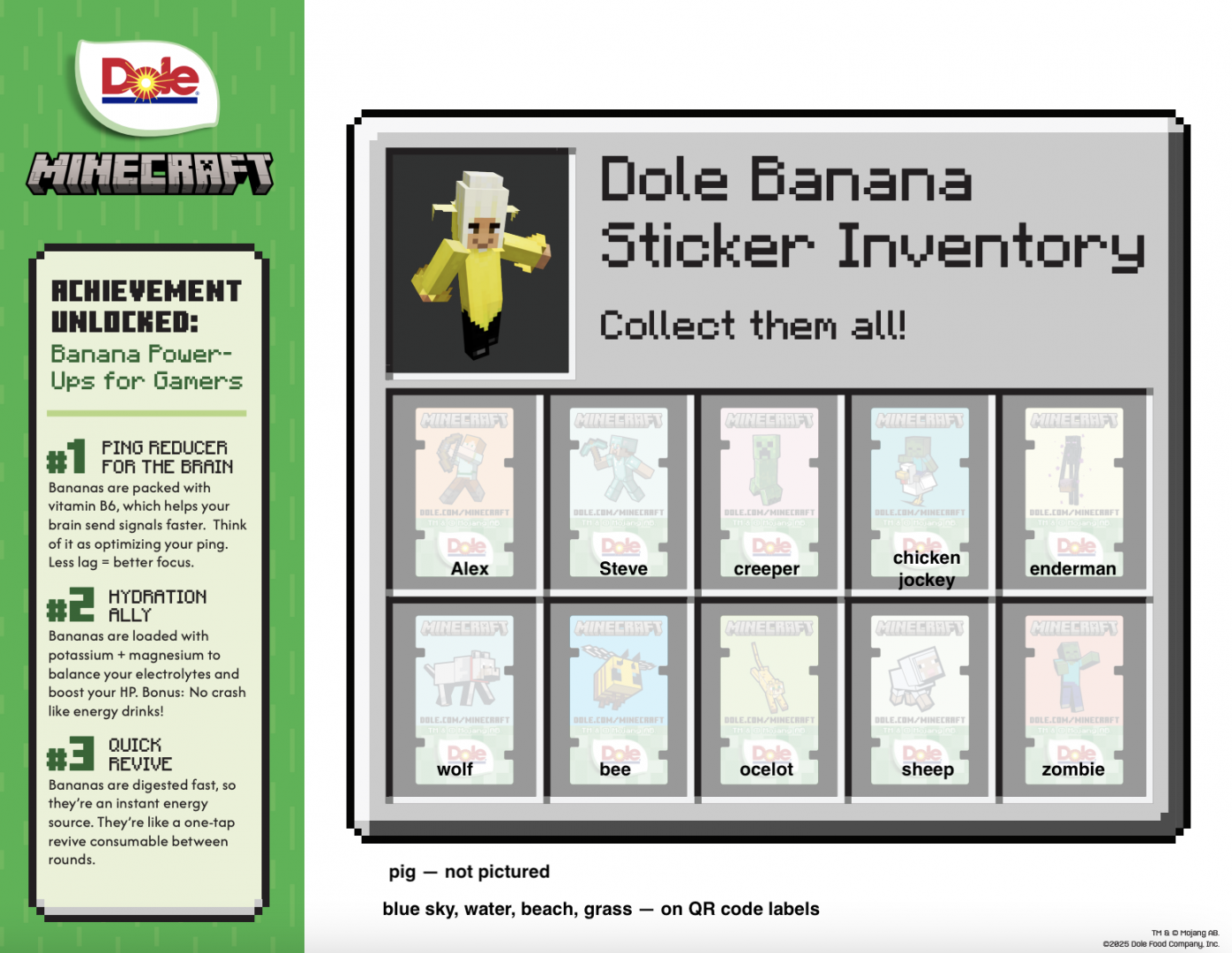 There 5 diff designs in each set. Dole does not show that there are three different QR code labels. One with the first set and, I assume, two with the second.