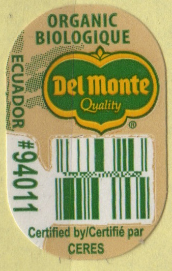 Del Monte Quality ® Organic Biologique Ecuador #94011 Certified by / Certifié par ceres
